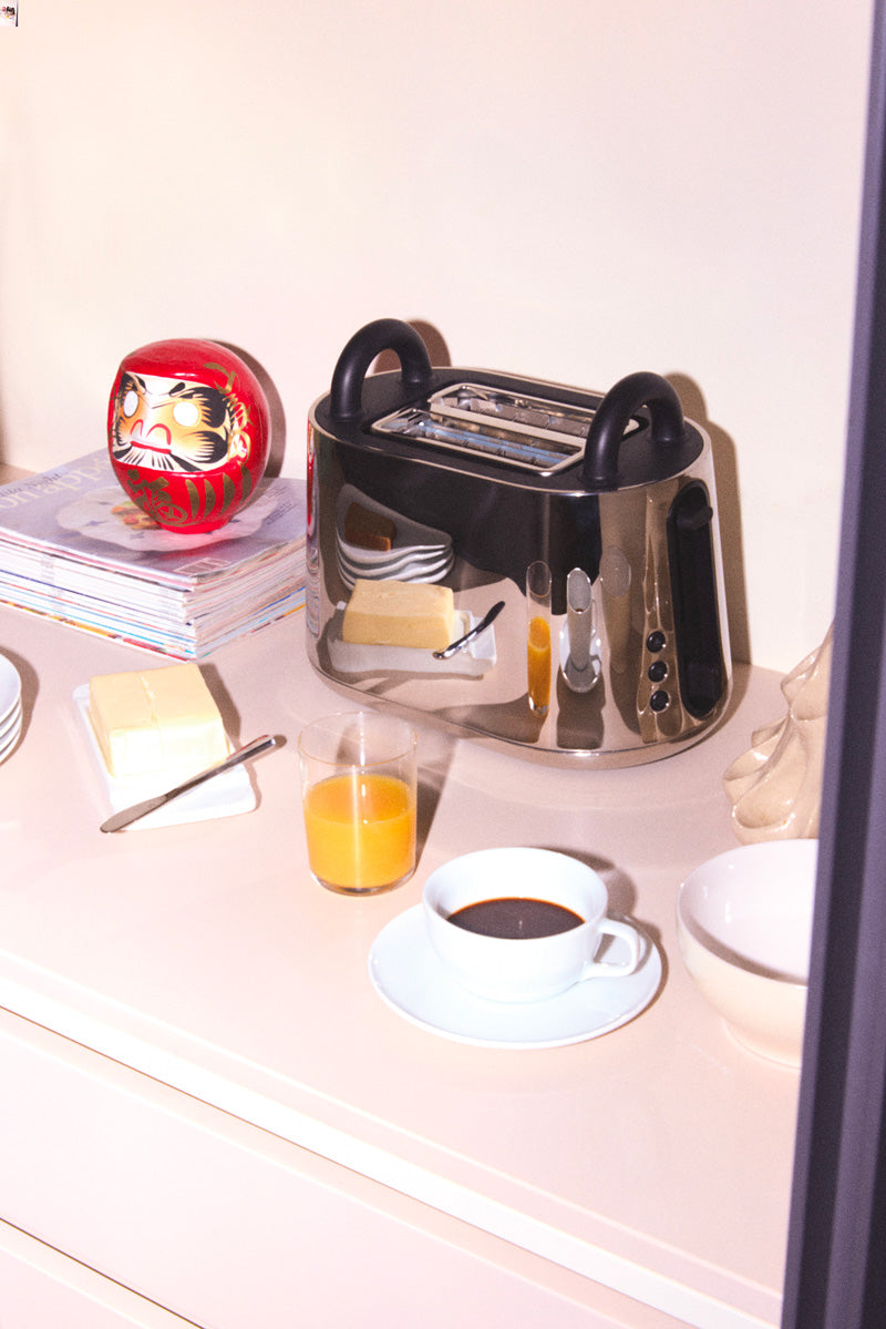 The toaster is a single-volume with an essential design, where the characteristic detail of the collection enters and re-emerges from the shiny body, creating two comfortable handles. Along with the toaster, the designer has created two accessories that can be purchased to enhance its performance: toaster racks and a warming rack for buns.A composition of forms that is ironic and playful yet always highly comfortable, reflected in all the appliances in the series: Toru showcases Nendo's ability to transform abstract concepts into tangible forms, creating objects of effortless elegance and uncompromising functionality.