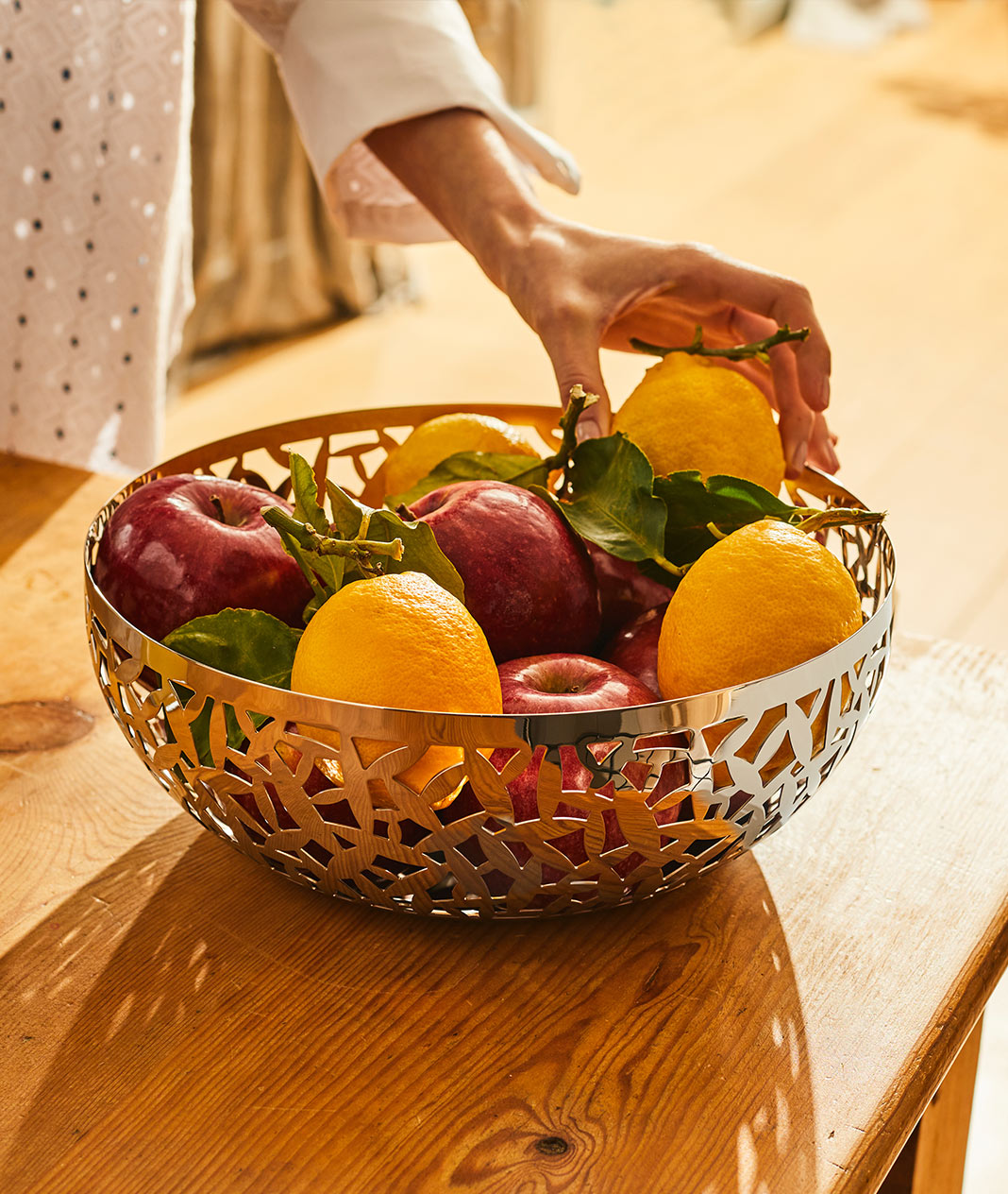 Distinctive for its fretwork, which represents a series of irregularly overlapping leaves, CACTUS! by Marta Sansoni has become one of the most representative objects of Alessi's expertise in the processing of perforated steel.