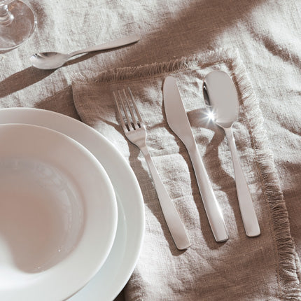 Following the typical minimalist approach that features in all Jasper Morrison's work, this design is an attempt to reduce the "cutlery-object" to its barest essence, its purest and most customary form and what might tentatively be called its definitive form, and deliberately stripped of all stylistic value and - perhaps precisely because of this - clearly recognisable as Morrison's work.